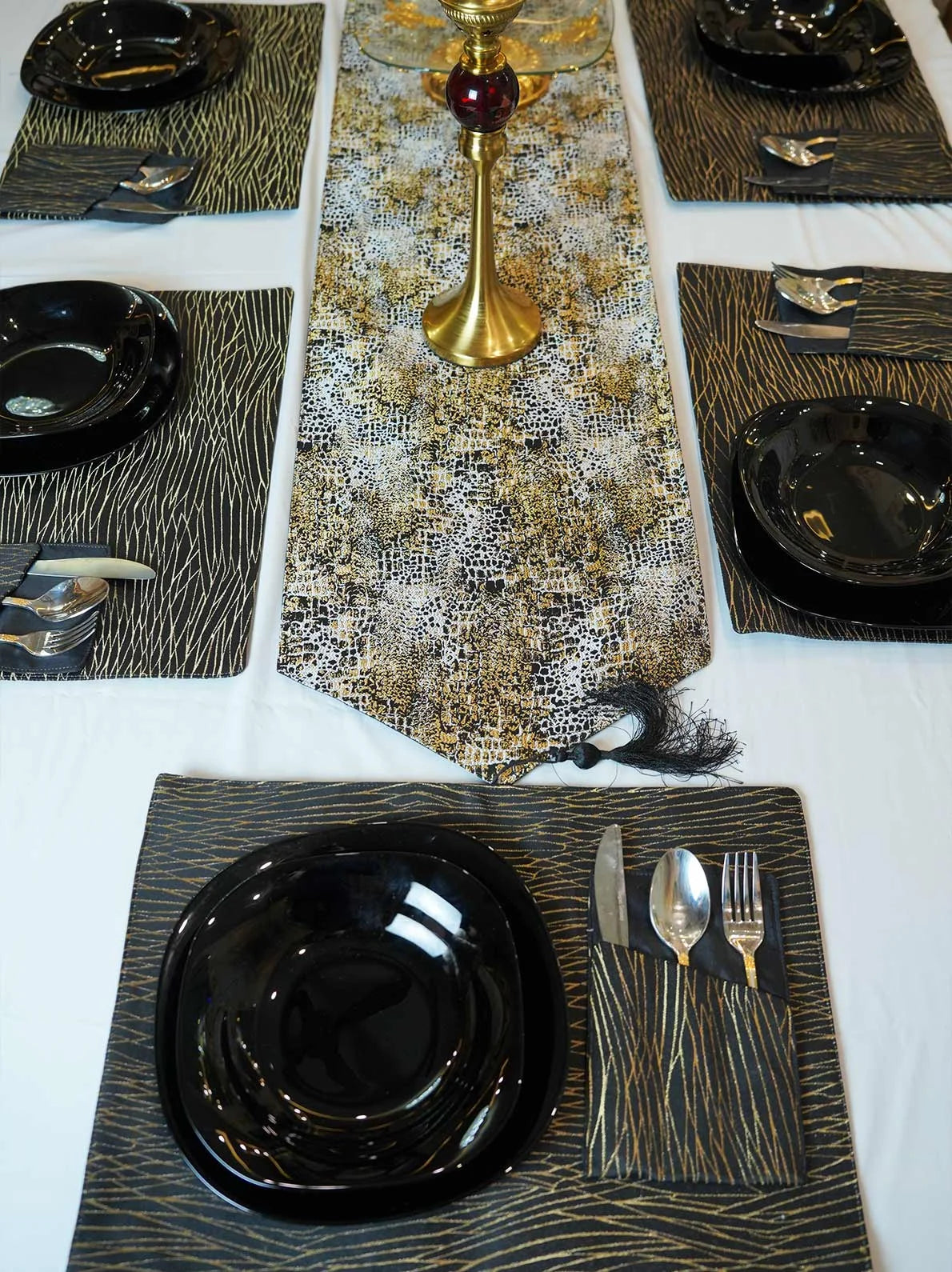 Set of 4: 1x Table Runner, 4x Table mats, 4x Cutlery Holder