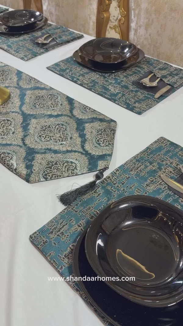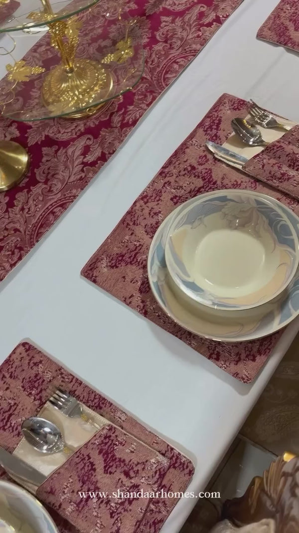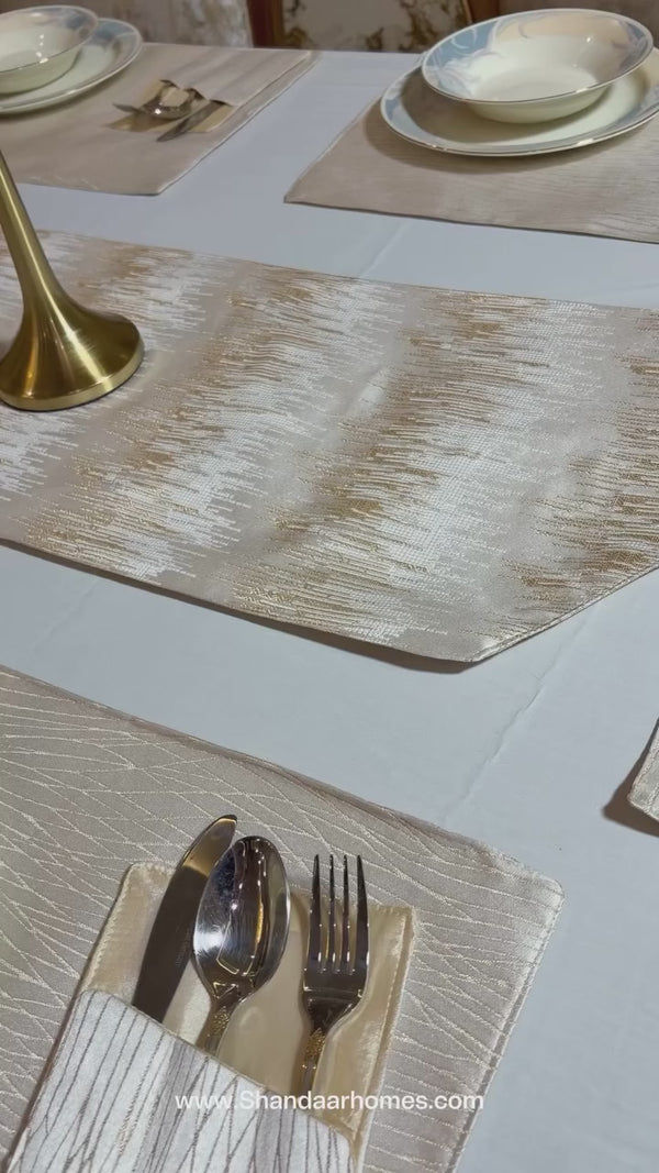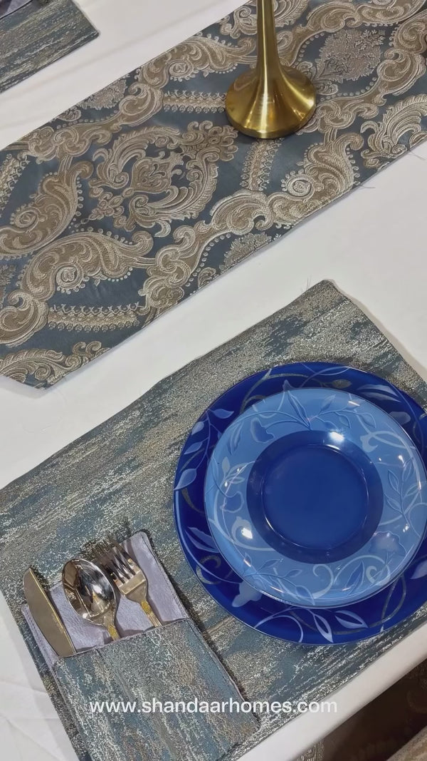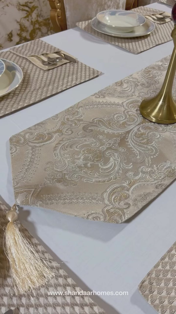 The Soft Gold Table Runner Set is a handcrafted masterpiece, made with great care and high-quality stitching that lasts. Each item in this collection is designed to be the centerpiece of your room, adding a touch of class and beauty to your home.